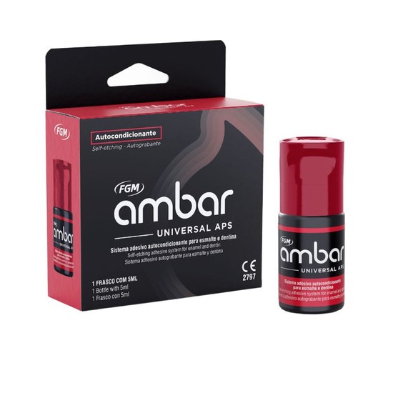 O Adesivo Ambar Universal APS 5ml, fabricado pela FGM, pode ser aplicado em diferentes protocolos de condicionamento ácido e em diferentes superfícies, possuindo o sistema APS que entrega um excelente desempenho em qualquer nível de umidade dentinária, sendo o ideal para aplicação intracanal.