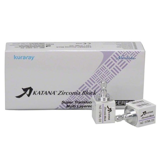 - Bloco em Zirconia Multicamadas Super Translúcida para uso em consultório no sistema CEREC CAD/CAM.