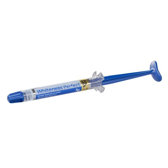 O clareador dental whiteness perfect 22% é comercializado em formato de seringa de 3 g, ideal para reposição rápida e uso racional em consultórios.