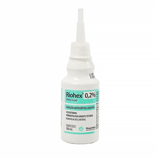 - Conteúdo: 01 Riohex 0,2% Rioquímica Dermo Suave Solução Aquosa Tópica Almotolia 100ml;