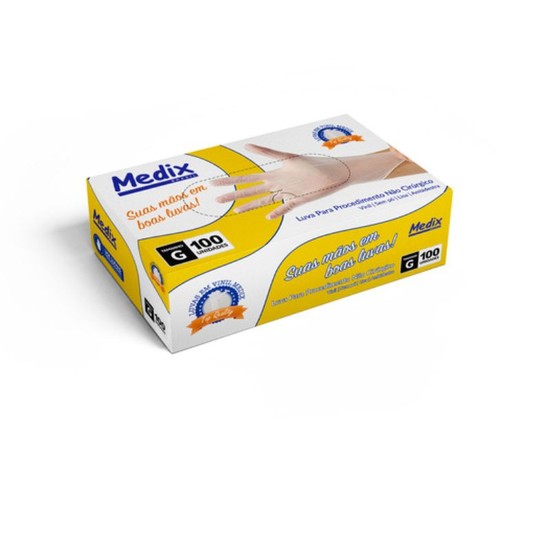 Danificado - Luva para Procedimento Vinil Saude Sem Pó G - Medix