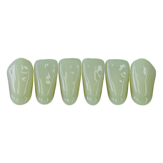 - Modelagem anatômica: Fabricado em 5 formas de dentes anteriores superiores, com dois formatos modernos — TL (triangular alongado) e SS (retangular).