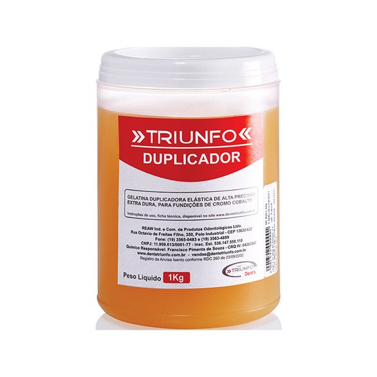 O Duplicador Triunfo é um material de alta qualidade desenvolvido para a reprodução precisa de modelos em PPR (Polipropileno Reciclável) para fundição em cromo cobalto. Sua formulação garante baixa viscosidade ao derreter, permitindo reprodução detalhada e fiel do modelo original.