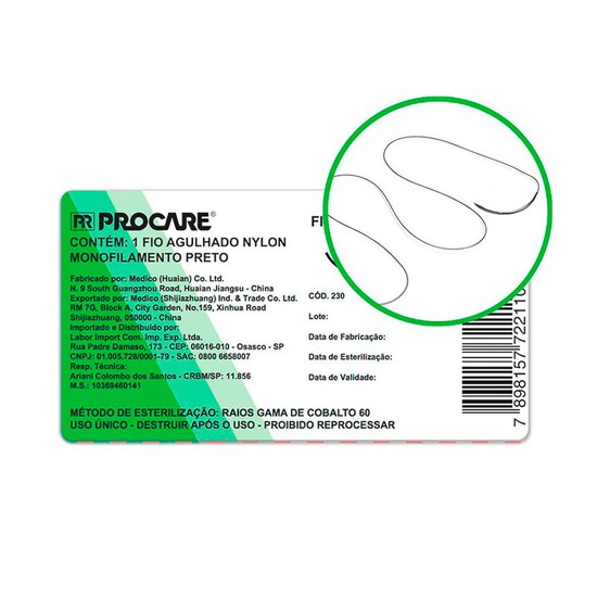 Fio de Sutura Agulhado de Nylon 1 - PROCARE