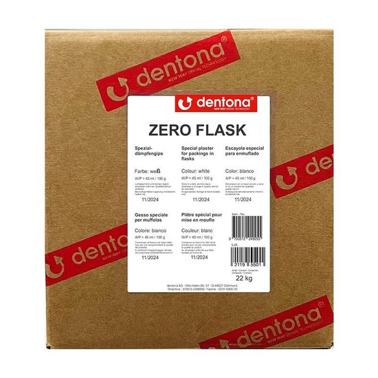 O Gesso Pedra Especial Zero Flask da Dentona é o único gesso do mundo com 0,00% de expansão, desenvolvido especificamente para inclusão em muflas sem alterar o enceramento. Sua formulação extra rápida permite trabalhar com agilidade: fica pronto em apenas 6 minutos e a mufla pode ser aberta em 10 minutos para remoção da cera. Com textura fluida, copia todos os detalhes anatômicos e oferece resistência mecânica para suportar as pressões do processo, ao mesmo tempo em que facilita a demuflagem devido à sua baixa dureza.