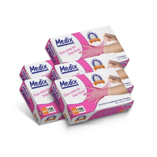Kit 5 Caixas Luva Para Procedimento Nitrílo Sem Pó Rosa - Medix