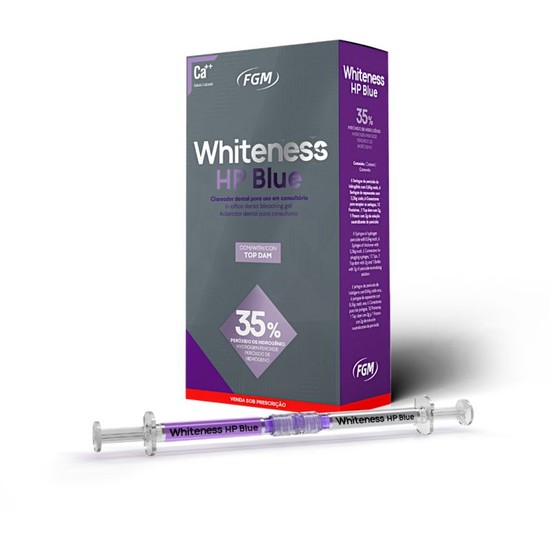 O Whiteness HP Blue 35% FGM é um clareador de consultório à base de peróxido de hidrogênio, desenvolvido para proporcionar resultados previsíveis com baixos índices de sensibilidade. Sua formulação alcalina, presença de cálcio e sistema autocatalisado tornam o produto uma referência em clareamento dental em consultório, especialmente para protocolos clínicos que exigem segurança e estabilidade.
