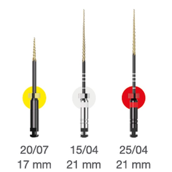 - Design minimamente invasivo, com taper reduzido e ponta curvada em arco, favorecendo maior preservação de dentina.