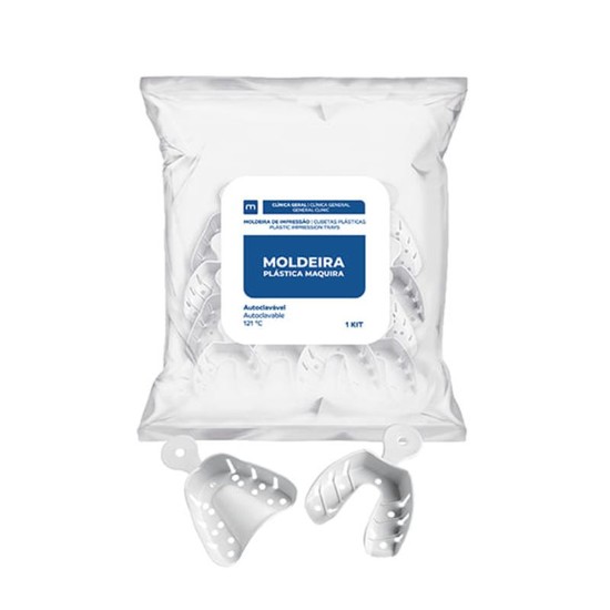 O Kit Moldeiras de Plástico Maquira é composto por 8 pares de moldeiras odontológicas em diferentes tamanhos, ideais para moldagens com alginato ou outros materiais de impressão. Fabricadas em nylon com fibra de vidro, oferecem excelente resistência e durabilidade, sendo uma opção prática e reutilizável para consultórios e laboratórios.
