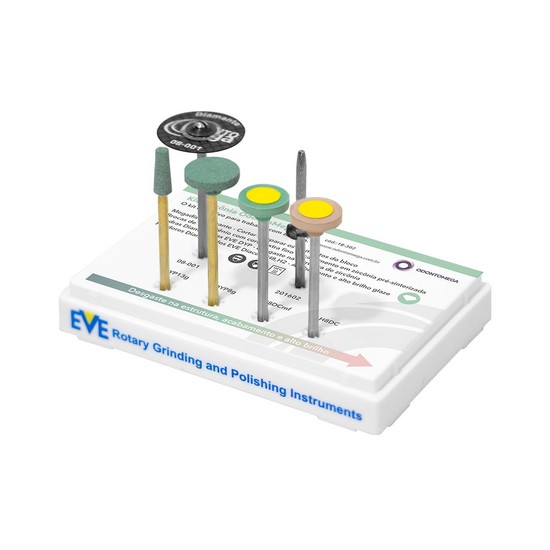 O Kit Polidores EVE para Zircônia PM foi desenvolvido para oferecer desempenho superior nos processos de desgaste, corte, ajuste e polimento de estruturas em zircônia. Combinando pedras diamantadas, broca de tungstênio, polidores específicos e disco diamantado extrafino, o kit garante segurança térmica, precisão e acabamento impecável.