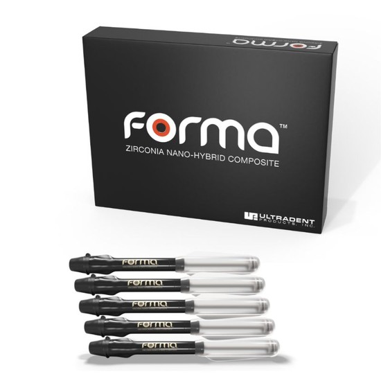 - Alta resistência e estética – A Resina Forma Ultradent combina zircônia e trifluoreto de ítrio para garantir resistência à compressão, brilho natural e ótima translucidez.