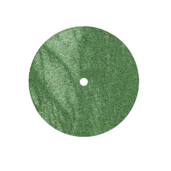 O Polidor Clássico Verde para Cromo-Cobalto da Dedeco é um abrasivo em borracha com carbeto de silício e granulação grossa, indicado para acabamento inicial e contorno de ligas Co-Cr, entregando corte eficiente e preparo uniforme da superfície antes das etapas de polimento fino.