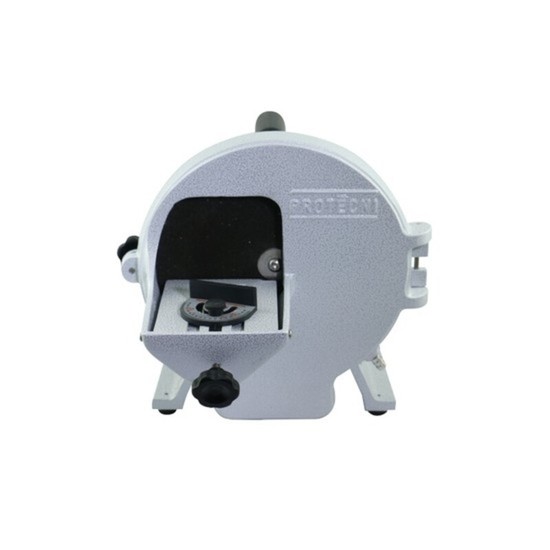 Recortador de gesso com estrutura em alumínio e irrigação automática, projetado para alto desempenho e praticidade no laboratório. Oferece motor potente de 1/2 CV, ampla área útil e mesa angulada, facilitando o recorte preciso com troca e limpeza do disco simplificadas.