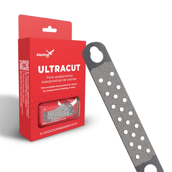 Indicado para ser utilizada em conjunto com o Arco Ultracut. Seu uso oferece maior segurança ao paciente e eficiência ao profissional em procedimentos como remoção de excessos e acabamento interproximal de compósitos, cimentos resinosos e adesivos, preservando o ponto de contato. Também é recomendada para ajustes em trabalhos como inlays/onlays, facetas laminadas e remoção de excessos de resinas, cimentos ou amálgamas.